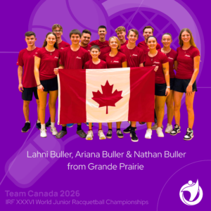 Lahni Buller of Grande Prairie represented Canada and won Bronze in the U18 doubles at the IRF World Junior Championships in racquetball. Ariana Buller and Nathan Buller also competed.