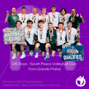 The U16 Boys from the SPVC South Peace Volleyball Club won Volleyball USA’s West Coast Qualifier in the 16 year old male division.